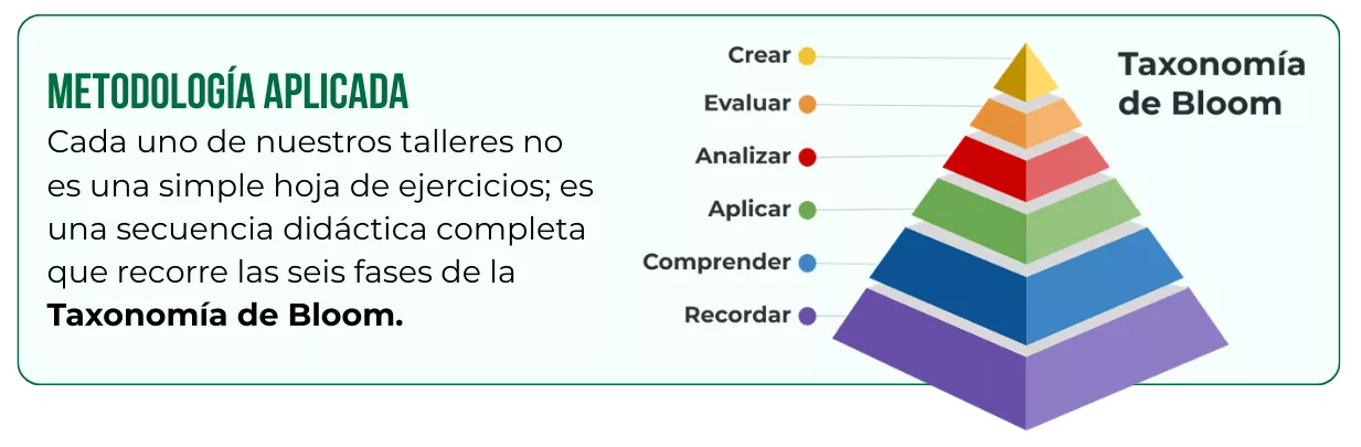 Recibe gratis un taller completo (píldora explicativa + práctica guiada + solucionario) directamente en tu correo.
