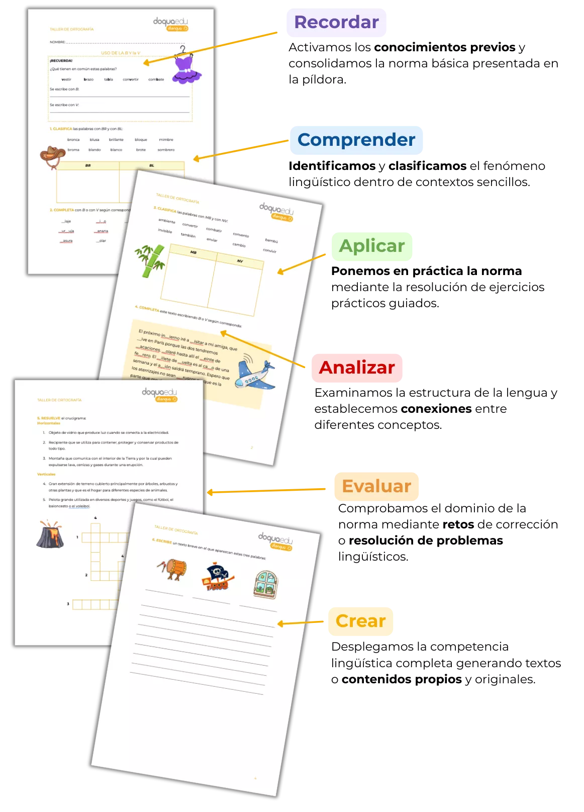 En Doquaedu diseñamos materiales de vanguardia para la atención multinivel en el área de lengua, cubriendo desde la gramática y la ortografía hasta la comprensión lectora, con un único objetivo: facilitar la labor docente con recursos que realmente funcionan en el aula actual.